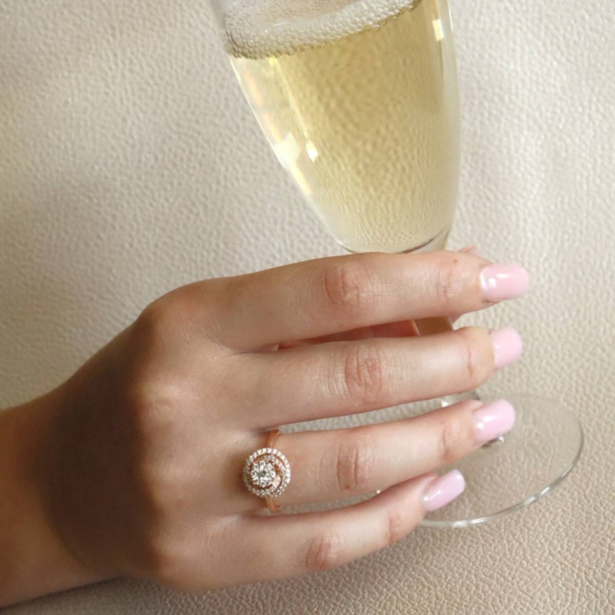 Achat bague de fiançailles or rose 18 carats et diamants en forme de rose