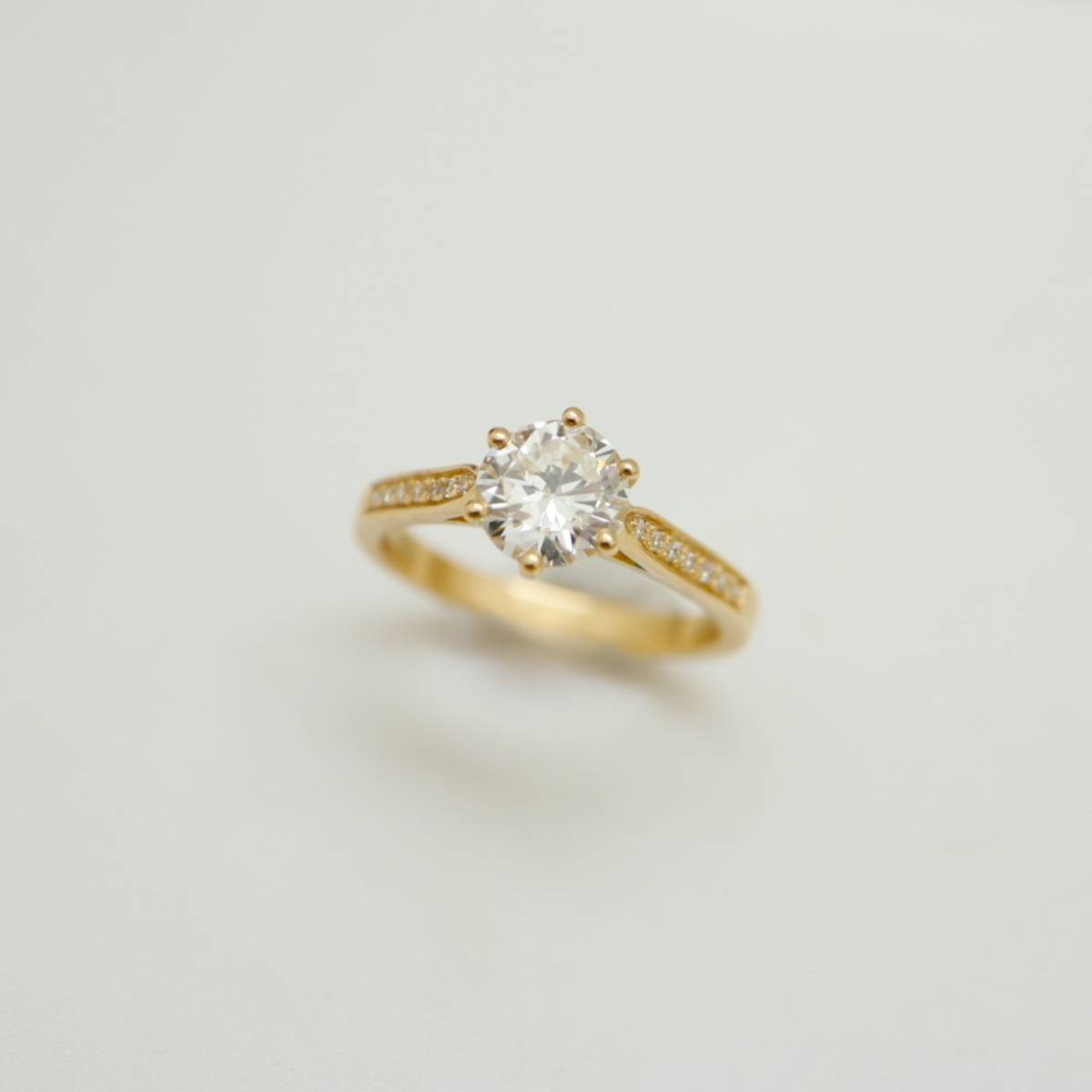 Bague de fiançailles artisanale or jaune 18 carats diamant brillant fabriquée à Bordeaux
