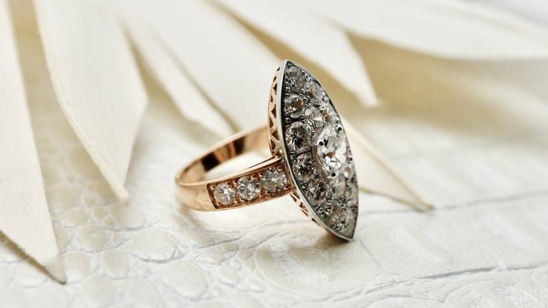 Bague marquise or jaune 18 carats et diamants bijouterie merignac