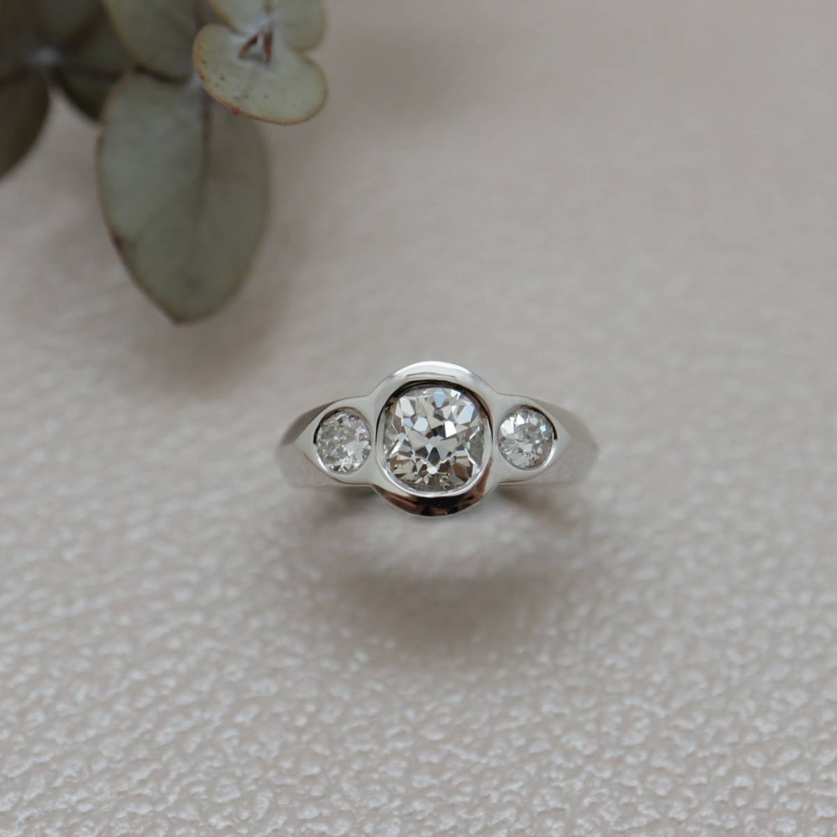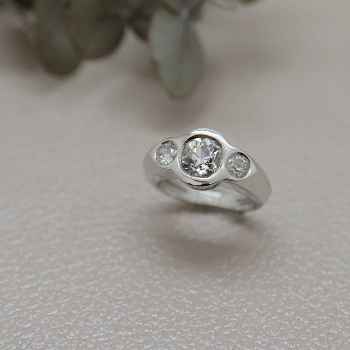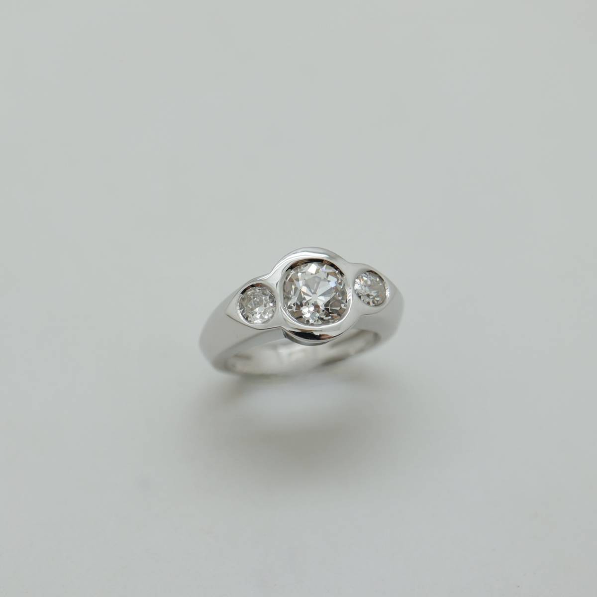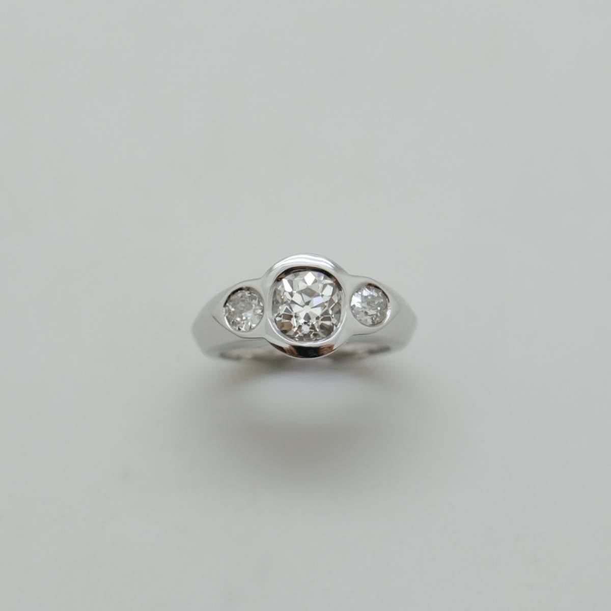 trois diamants taille ancienne, dont l’éclat subtil et vivant témoigne du charme incomparable des tailles d’époque.