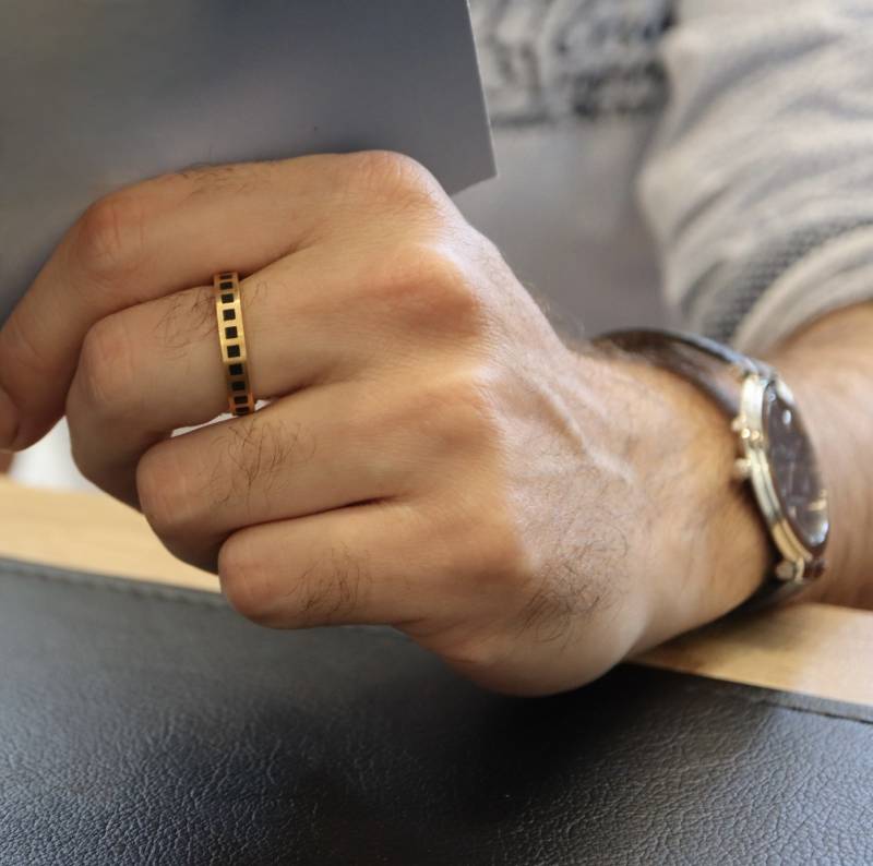 or jaune 750 millièmes composée de motifs carrés en