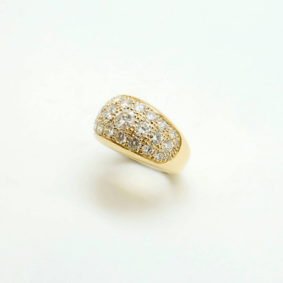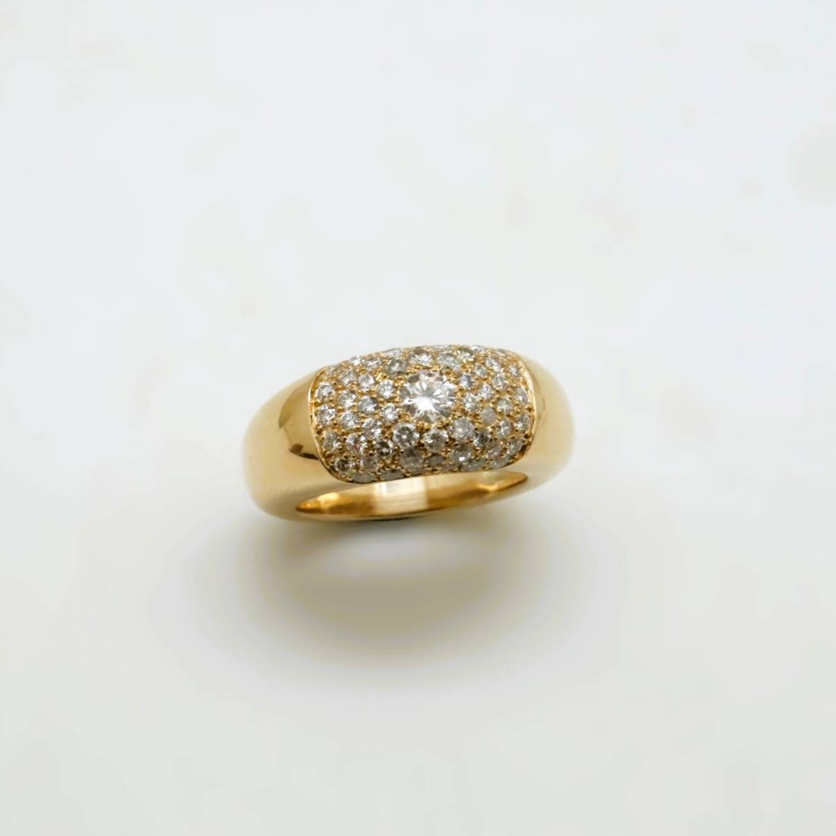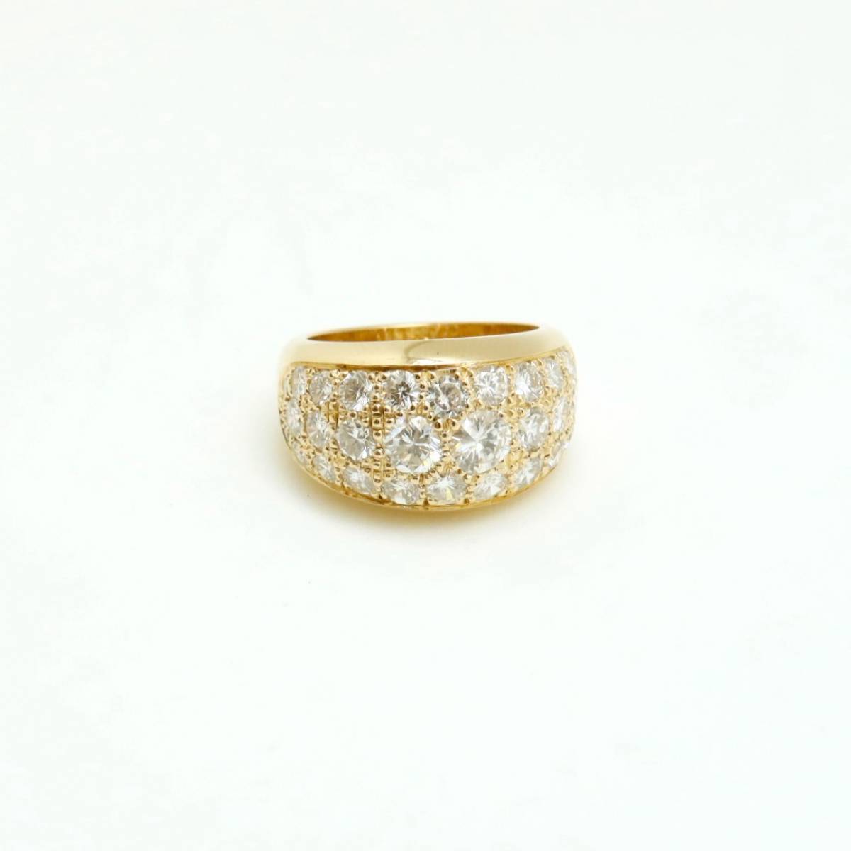 Imaginée pour incarner l'élégance et la lumière, cette création sur mesure se distingue par la noblesse de ses matériaux et la finesse de son artisanat. Entièrement façonnée en or jaune 18 carats, la bague prend la forme d’un jonc bombé, sublimant ainsi la douceur des courbes et le confort absolu au porté.