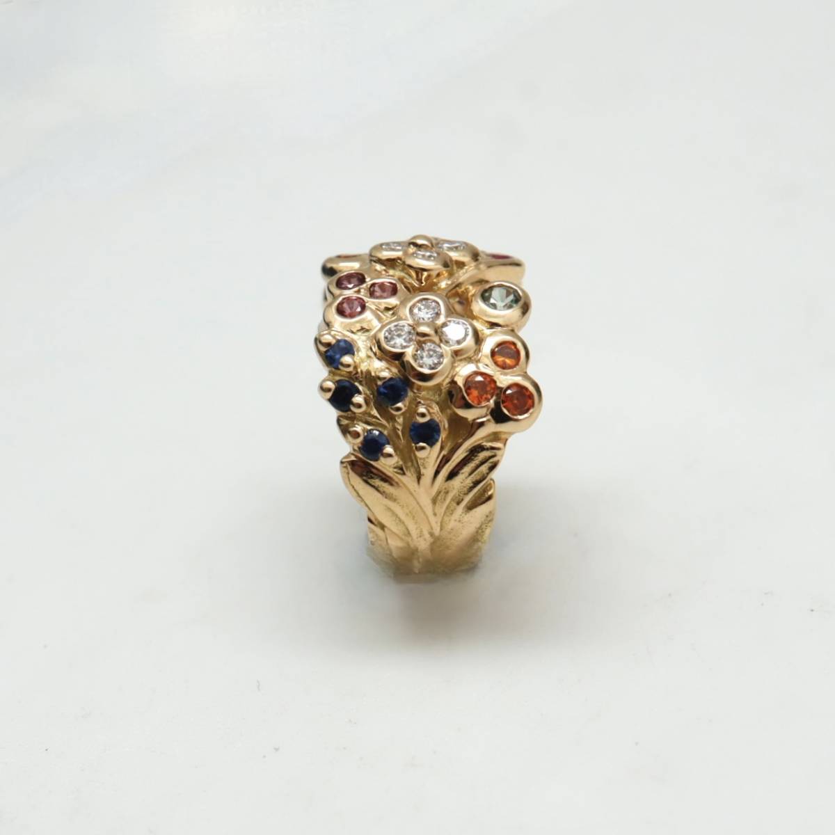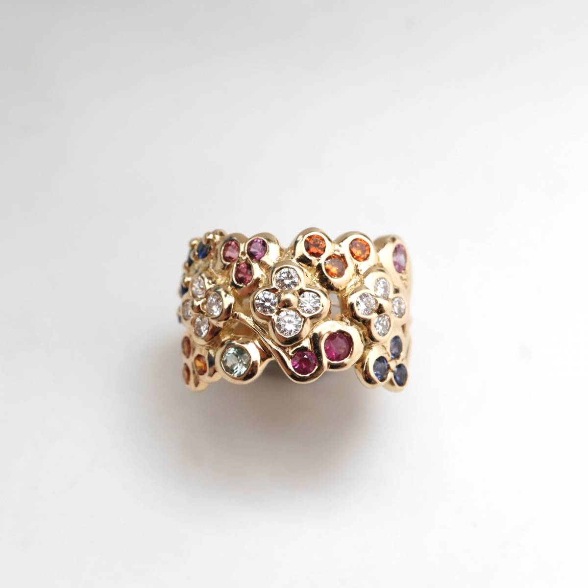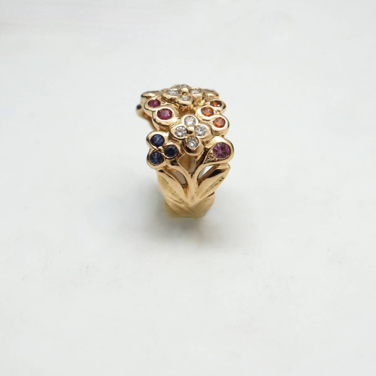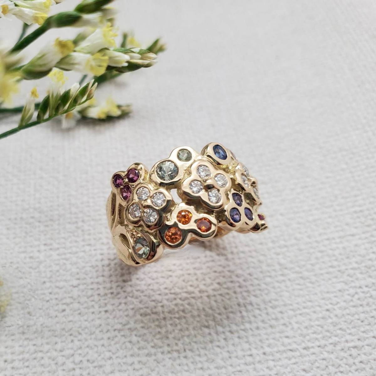 Bague or jaune mosaïque de saphirs et diamants personnalisée Bordeaux