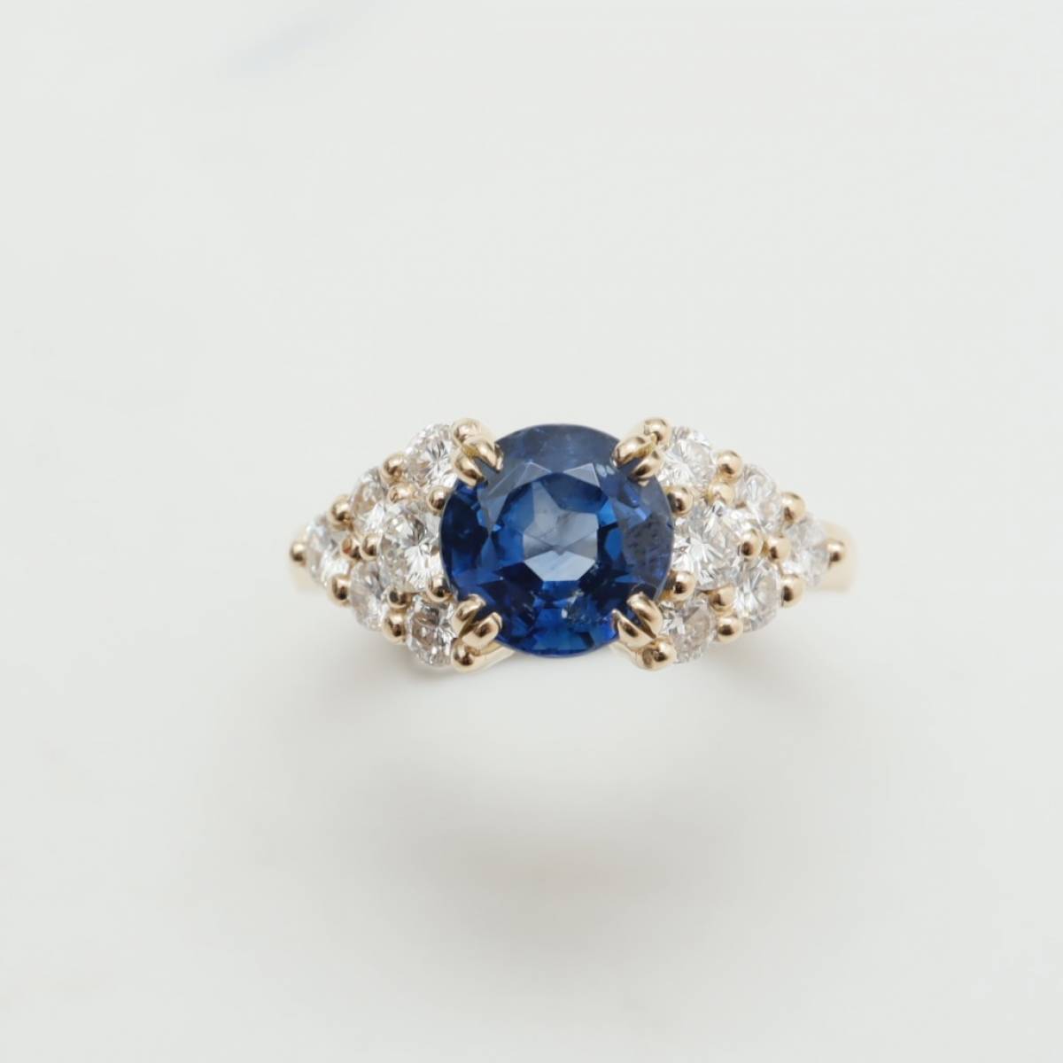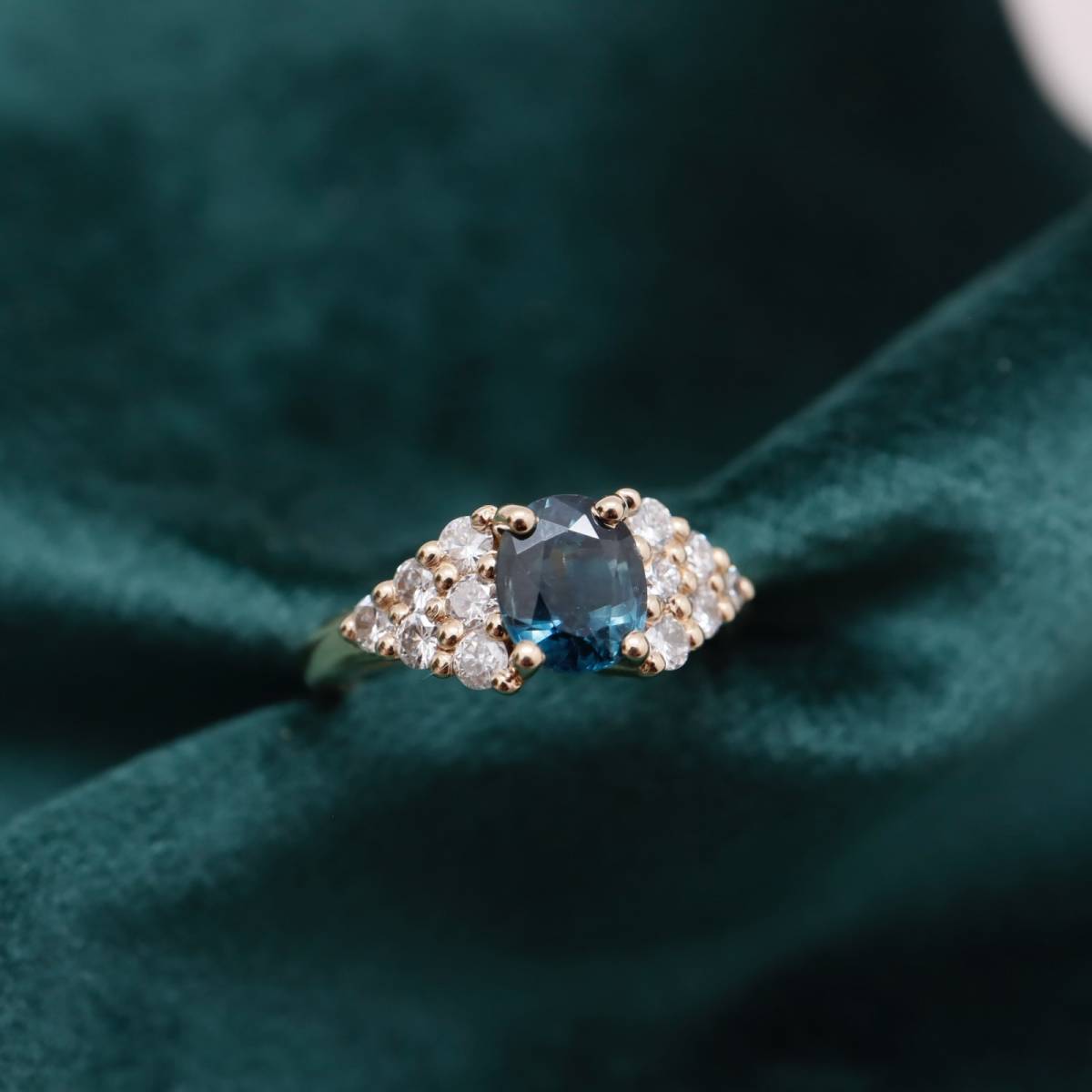 Bague or jaune 18 carats saphir vert épaulée diamants personnalisable création joaillière