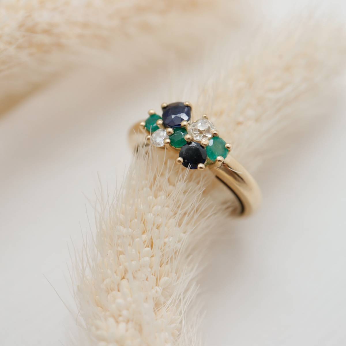 Les diamants, saphirs et émeraudes font partis des 4 pierres précieuses, leur combinaison sur cette bague est tout simplement époustouflante.