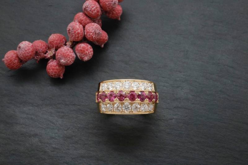 l'accord parfait avec la couleur des rubis. L'or rose 750 millièmes permet d'ajouter une