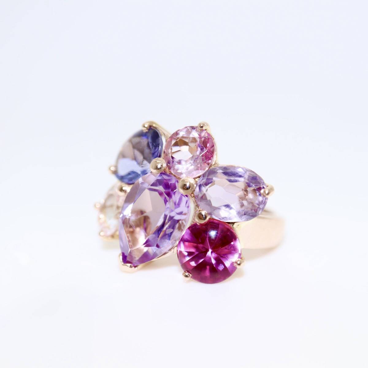 bijouterie à Bordeaux Caudéran, vous présente cette bague, réalisée sur-mesure, haute en couleurs. Elle est composée d'