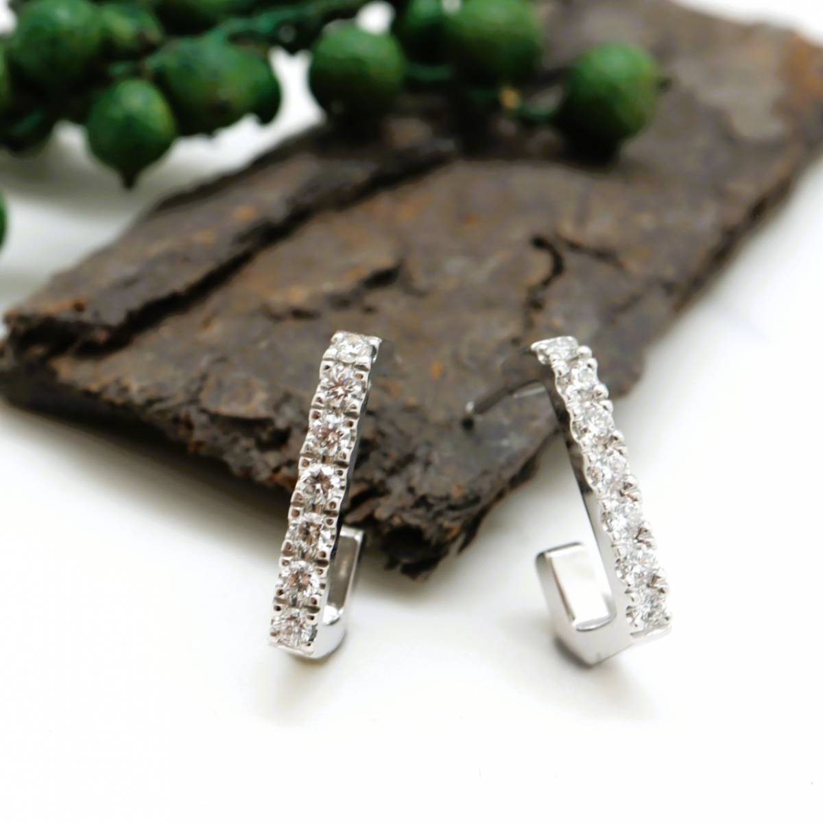 Chaque boucle est sertie de 7 diamants taille brillant. Les pierres, taillées de manière à refléter la lumière sous tous les angles, illuminent le visage.