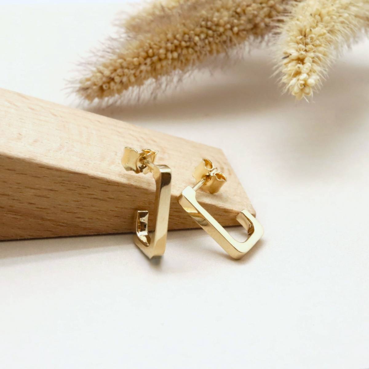 Ces boucles d'oreilles arborent une forme rectangulaire ouverte, un design moderne et contemporain qui se distingue par ses lignes épurées et géométriques.