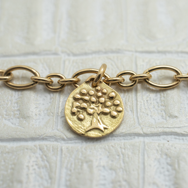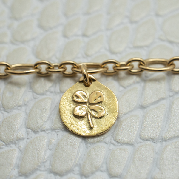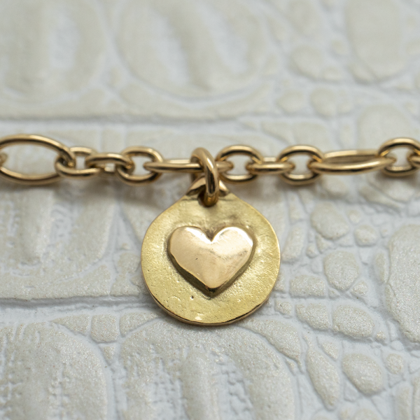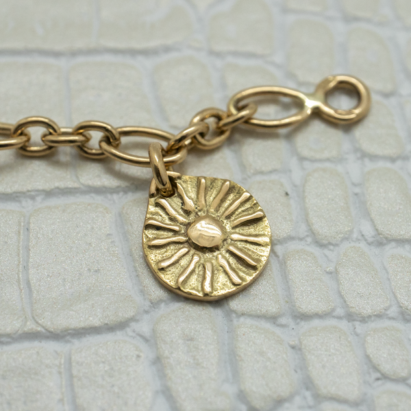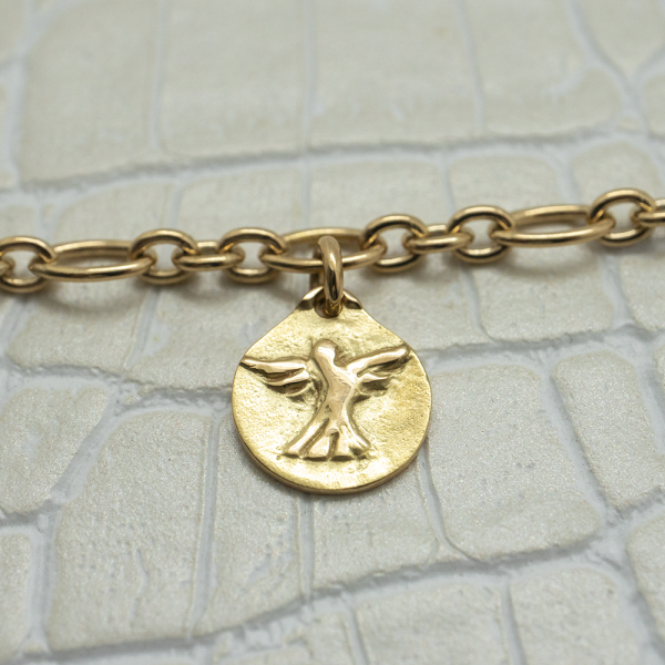 Vous rêvez d’un bijou original, intemporel, porteur d’un message tendre et protecteur... Nous vous présentons ce doux bracelet en or jaune 750 millièmes et ses petites médailles en pampille qui racontent l'histoire d'une vie.