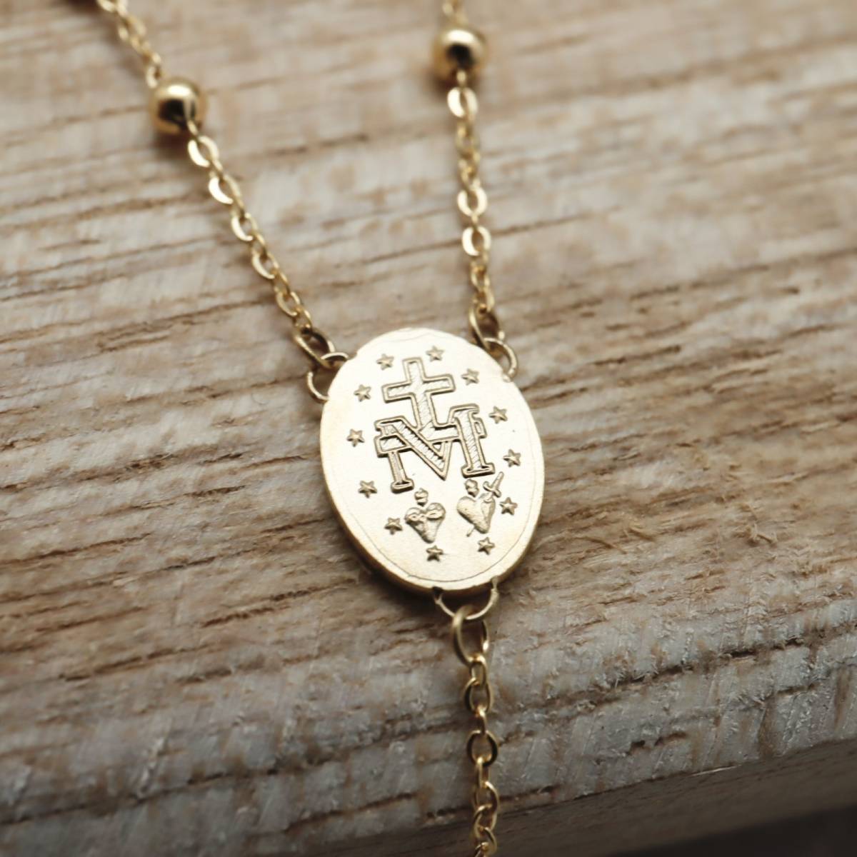 collier cadeau religieux catholique or jaune croix vierge miraculeuse gironde