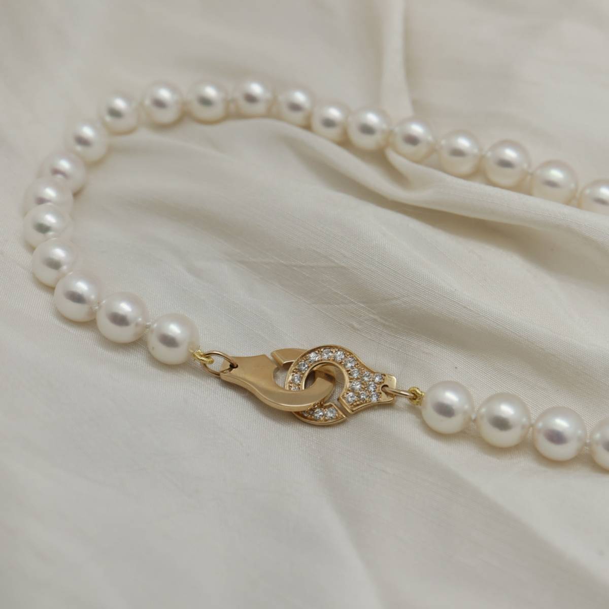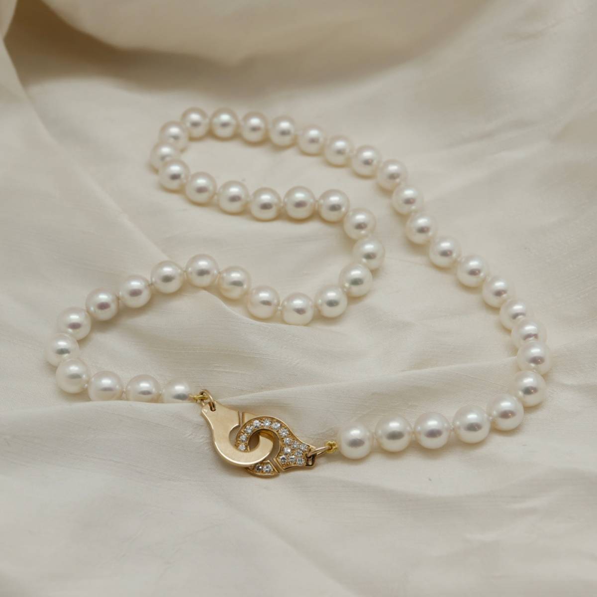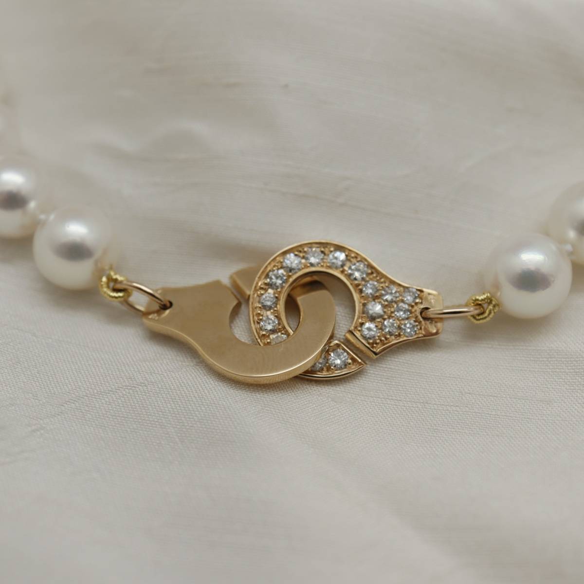 Création sur mesure d'un collier de perles AKOYA avec fermoir menottes fait main à Bordeaux
