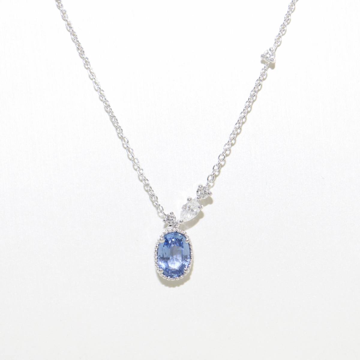 Un collier remarquable alliant la pureté de l'or blanc à la beauté envoûtante du saphir bleu.Ce