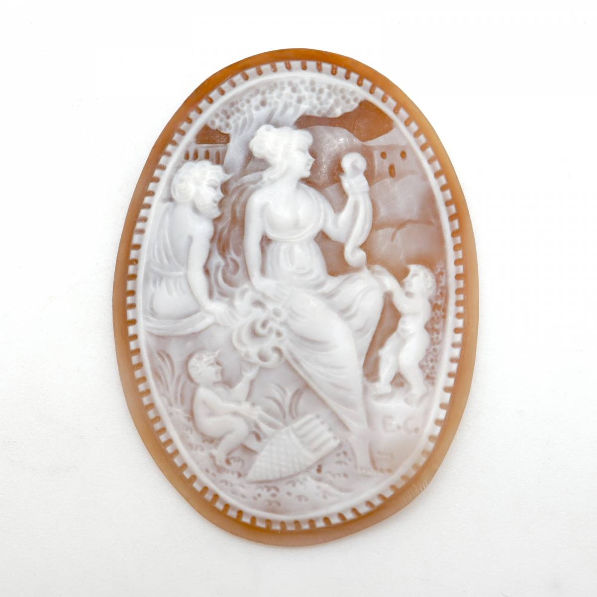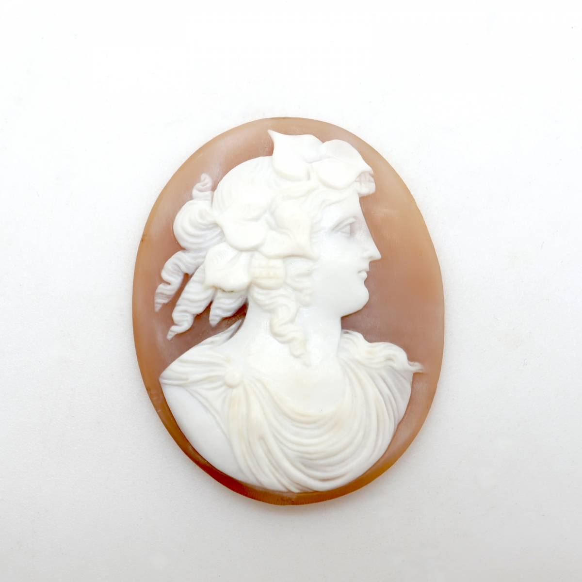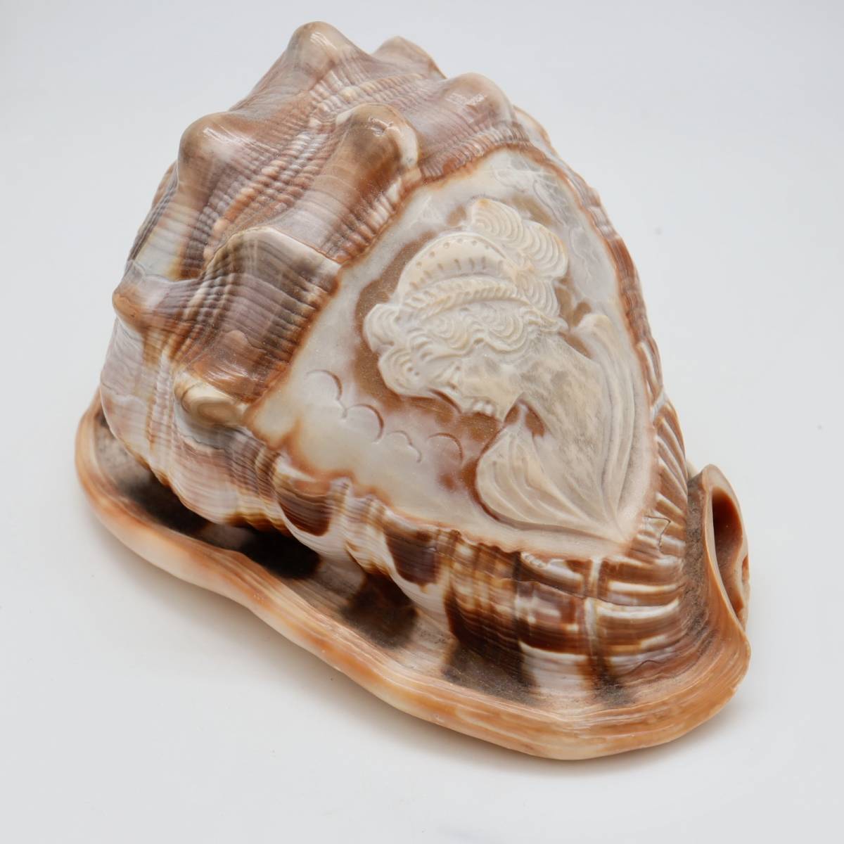 Les camées en coquillage sont sculptés dans des coquilles marines, souvent de couleurs contrastantes, comme le coquillage Sardonyx, qui offre une base brun-orange avec une couche supérieure blanche.