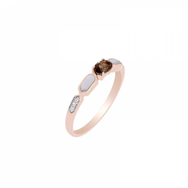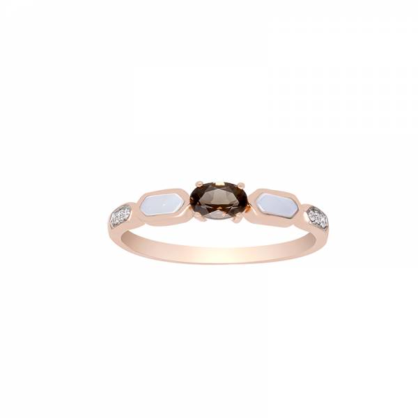 - Bague en or rose 750 millièmes, quartz fumé nacre blanche diamants