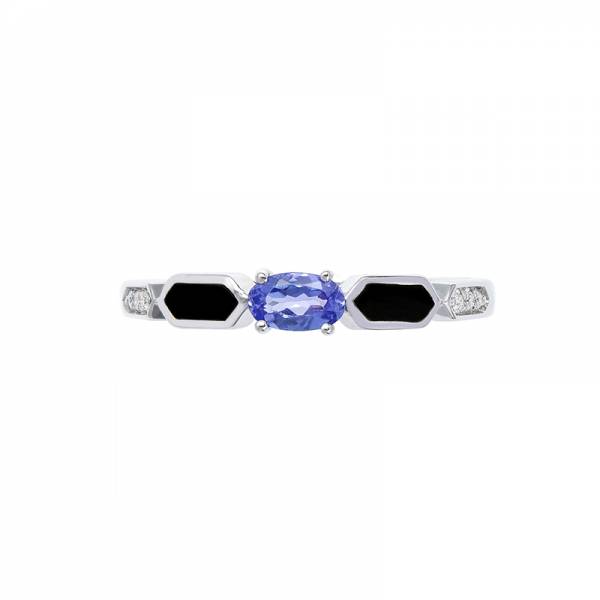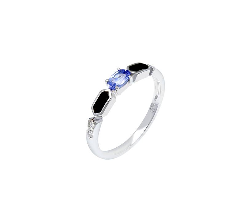 - Bague en or gris 750 millièmes, tanzanite et onyx et diamants