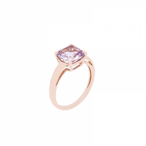 - Bague en or rose 750 millièmes et son améthyste Rose de France