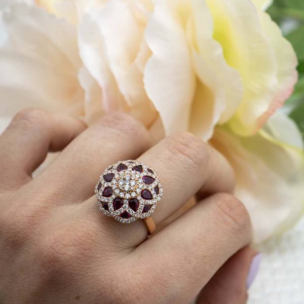 boutique-atelier cette bague motif mandala en rubis et diamants, sur de l'