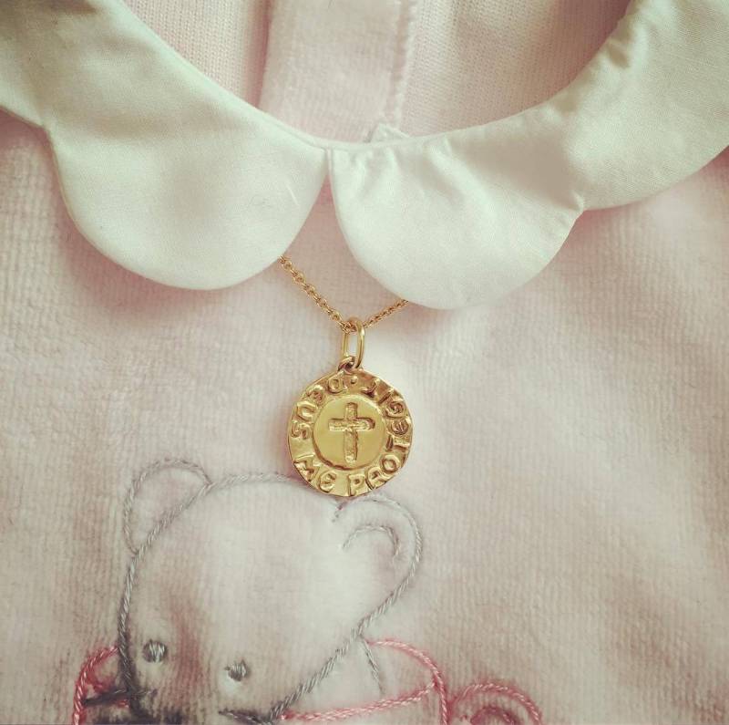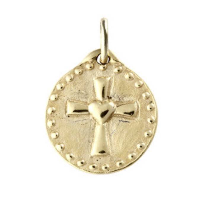 Médailles avec croix or 18 carats artisanales pour baptême et communion