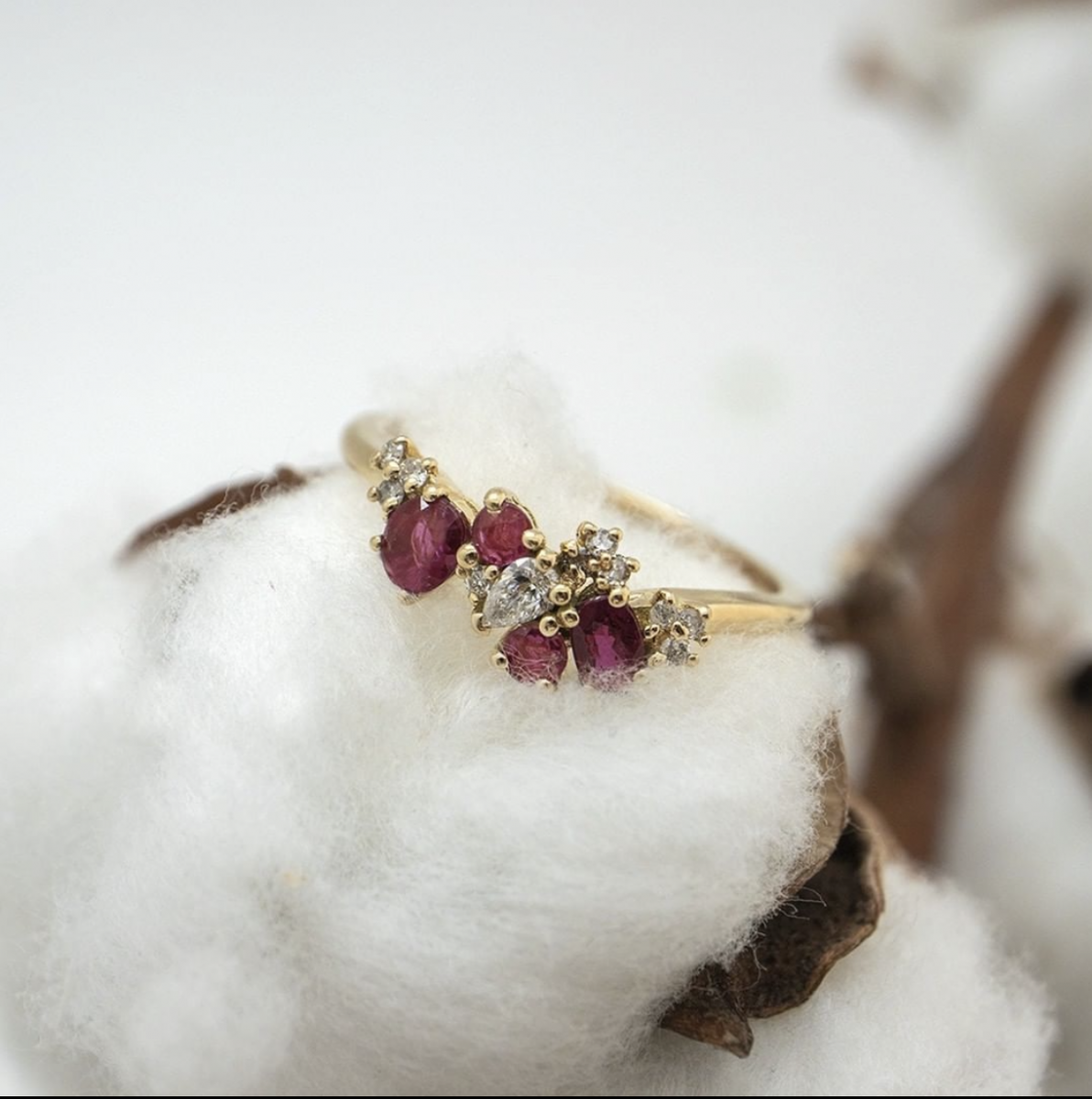 duo de diamants (ou diamants et rubis) habillent le doigt avec