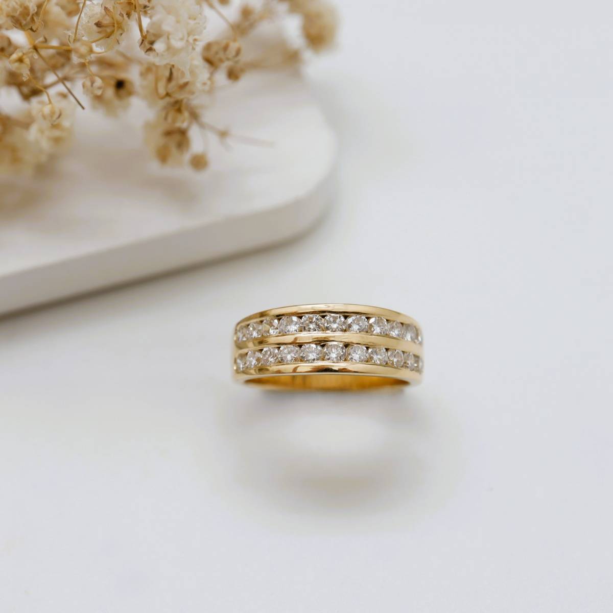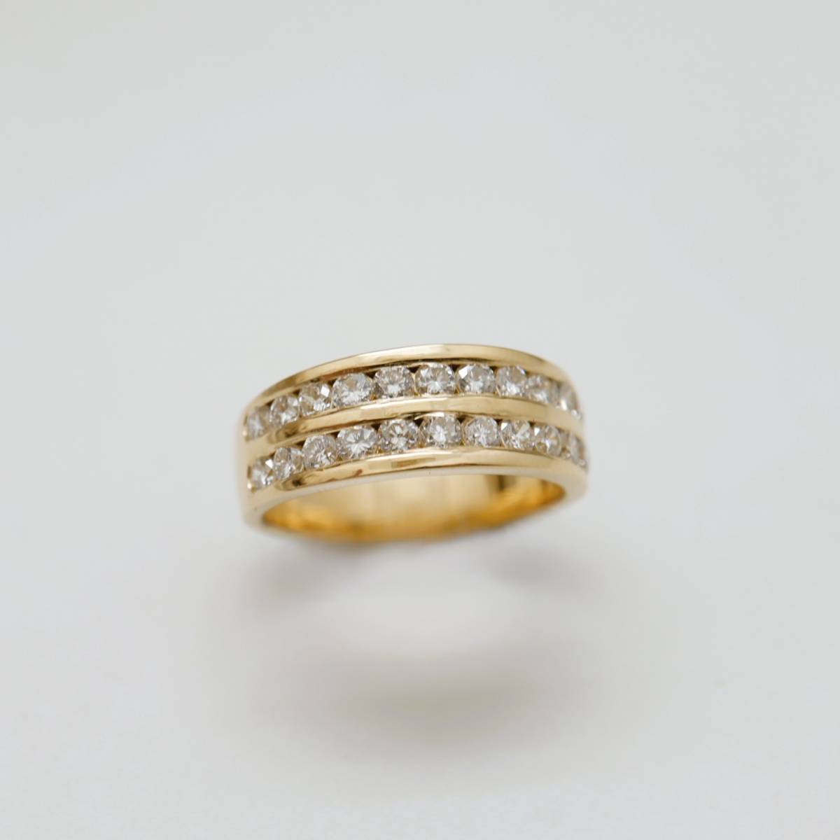 La Joaillerie Caminade vous présente quelques créations d'alliances pour femme composées de deux rangs sertie de diamants en or 18 carats.