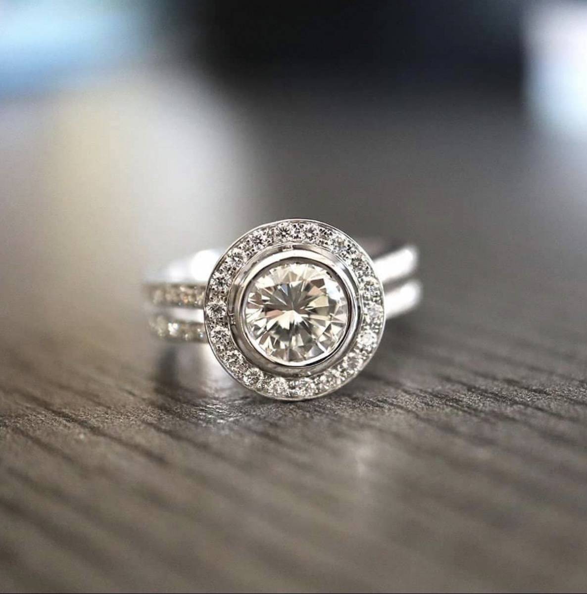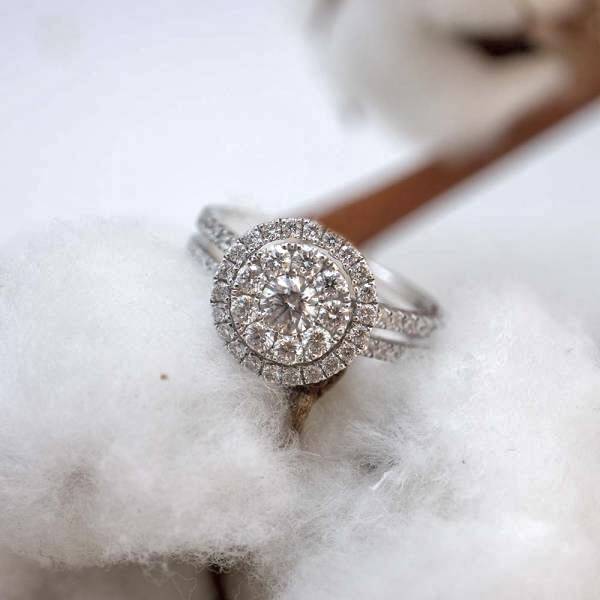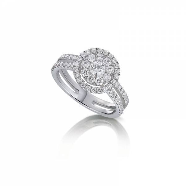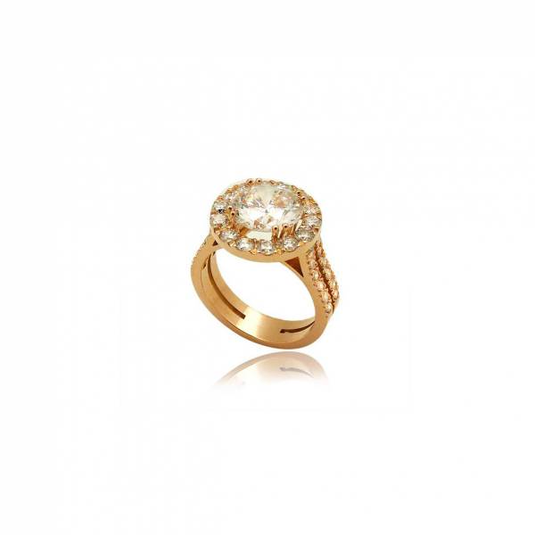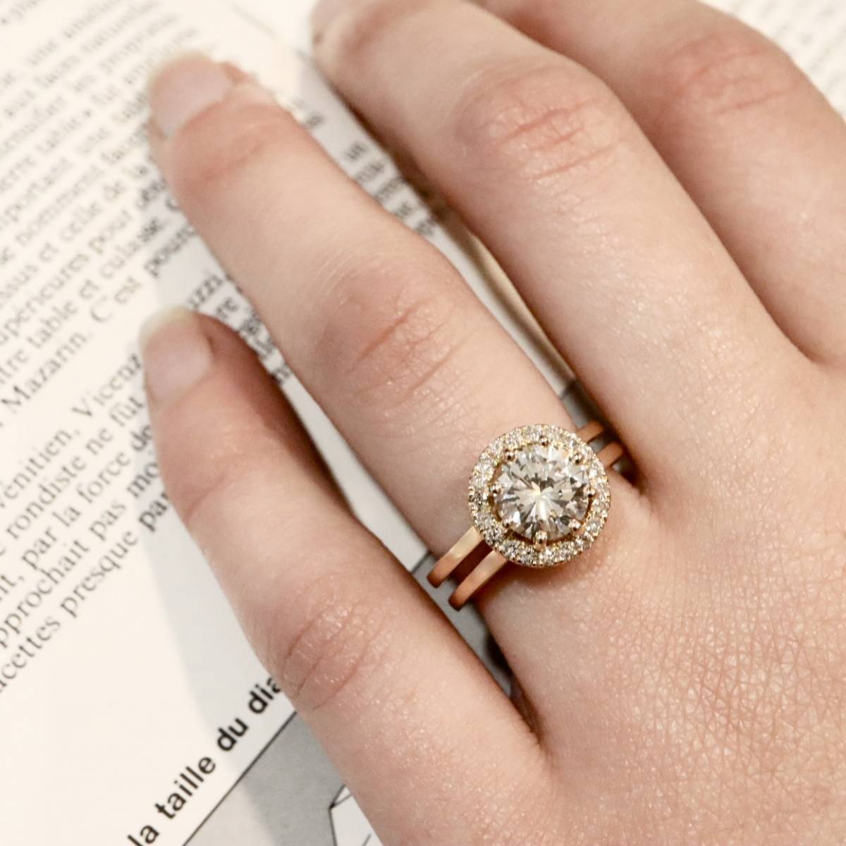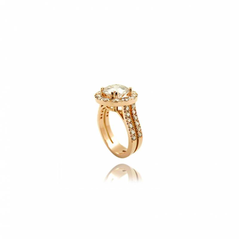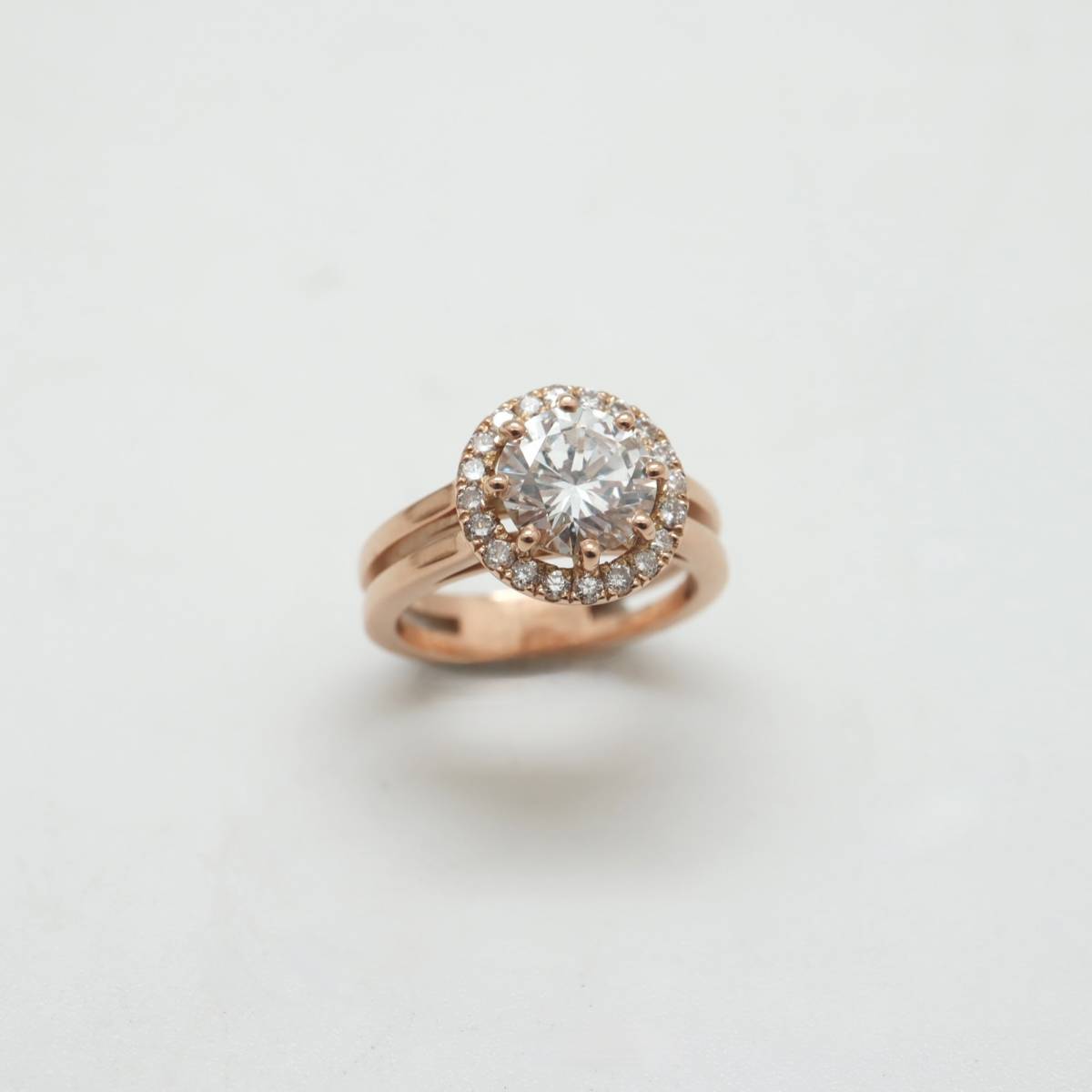 Bague en or rose ou blanc 750 millièmes, avec son diamant central et sa couronne de diamants