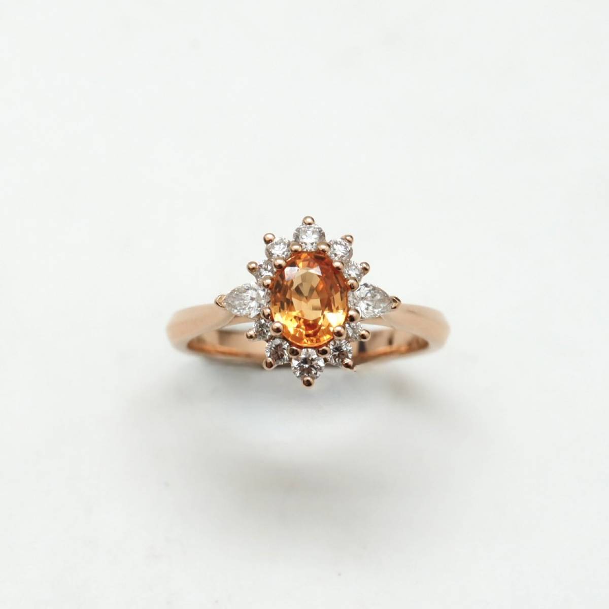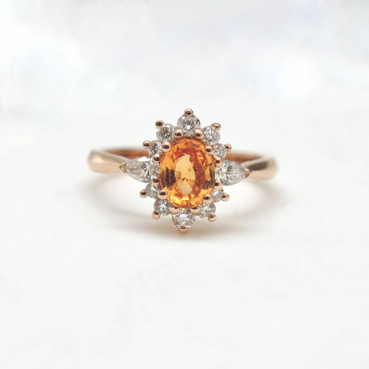 saphir orangé ovale. Un saphir éblouissant, sa teinte