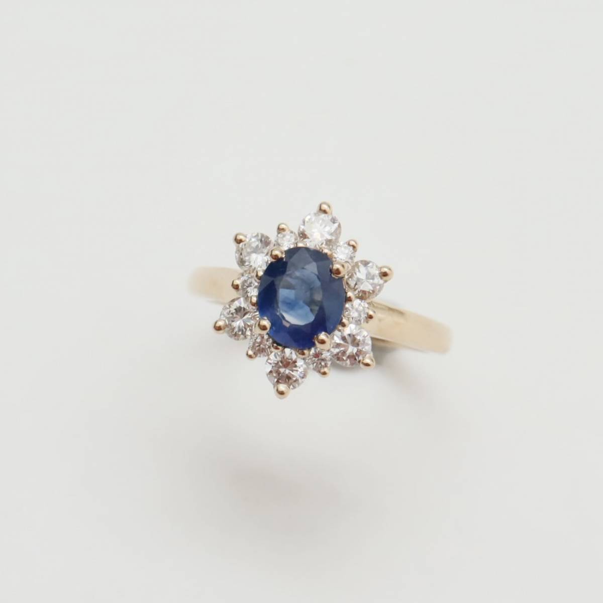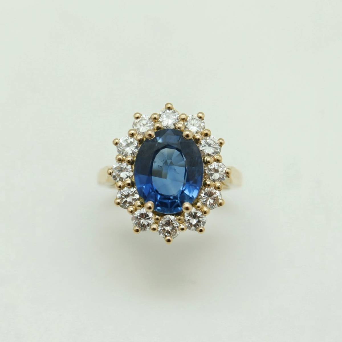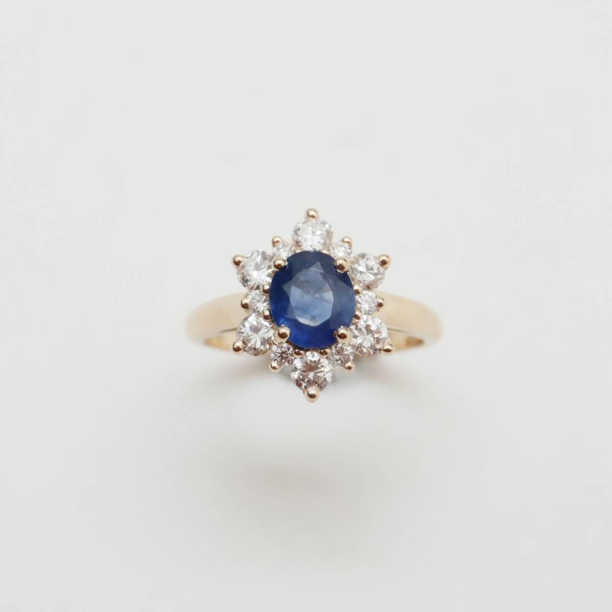 Elle était composée d’un beau saphir ovale bleu nuit d'un poids de 18 carats orné de 14 diamants.