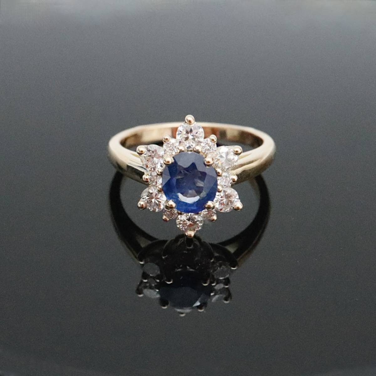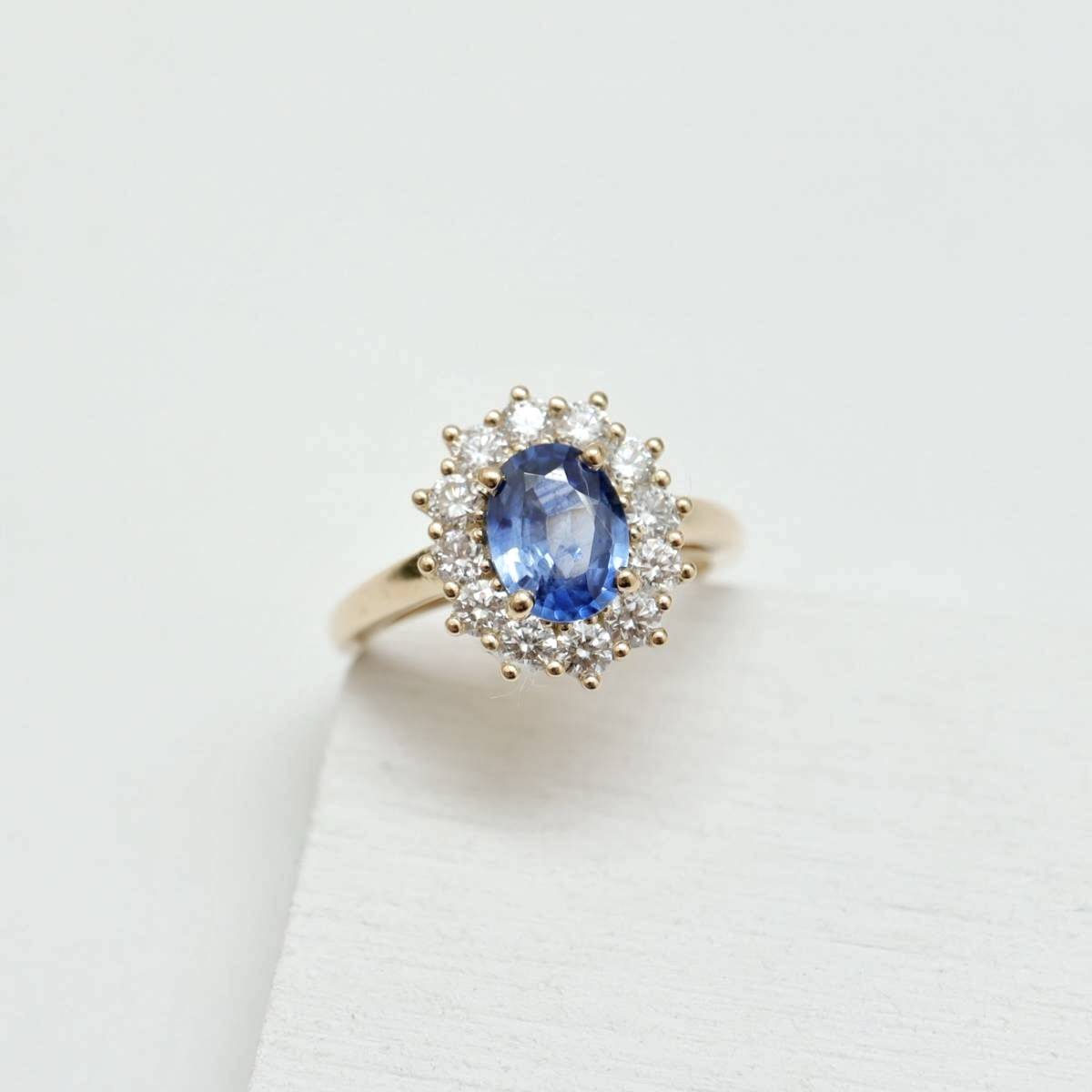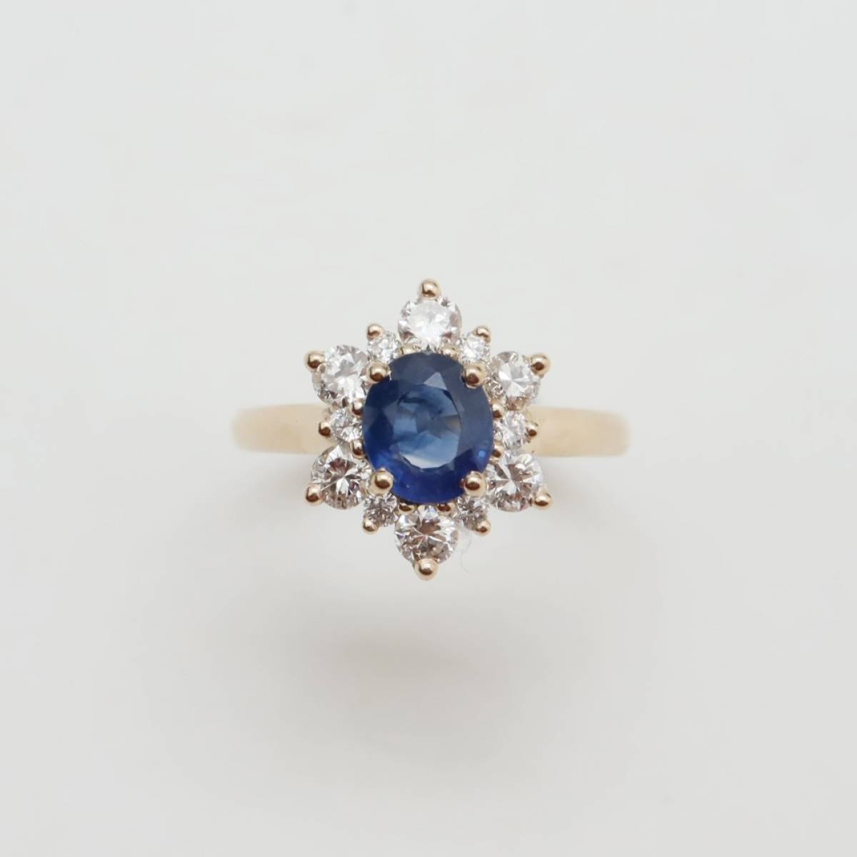 Elle était composée d’un beau saphir ovale bleu nuit d'un poids de 18 carats orné de 14 diamants.