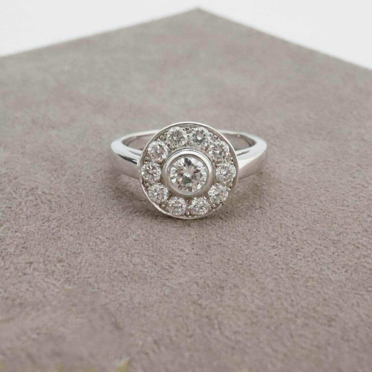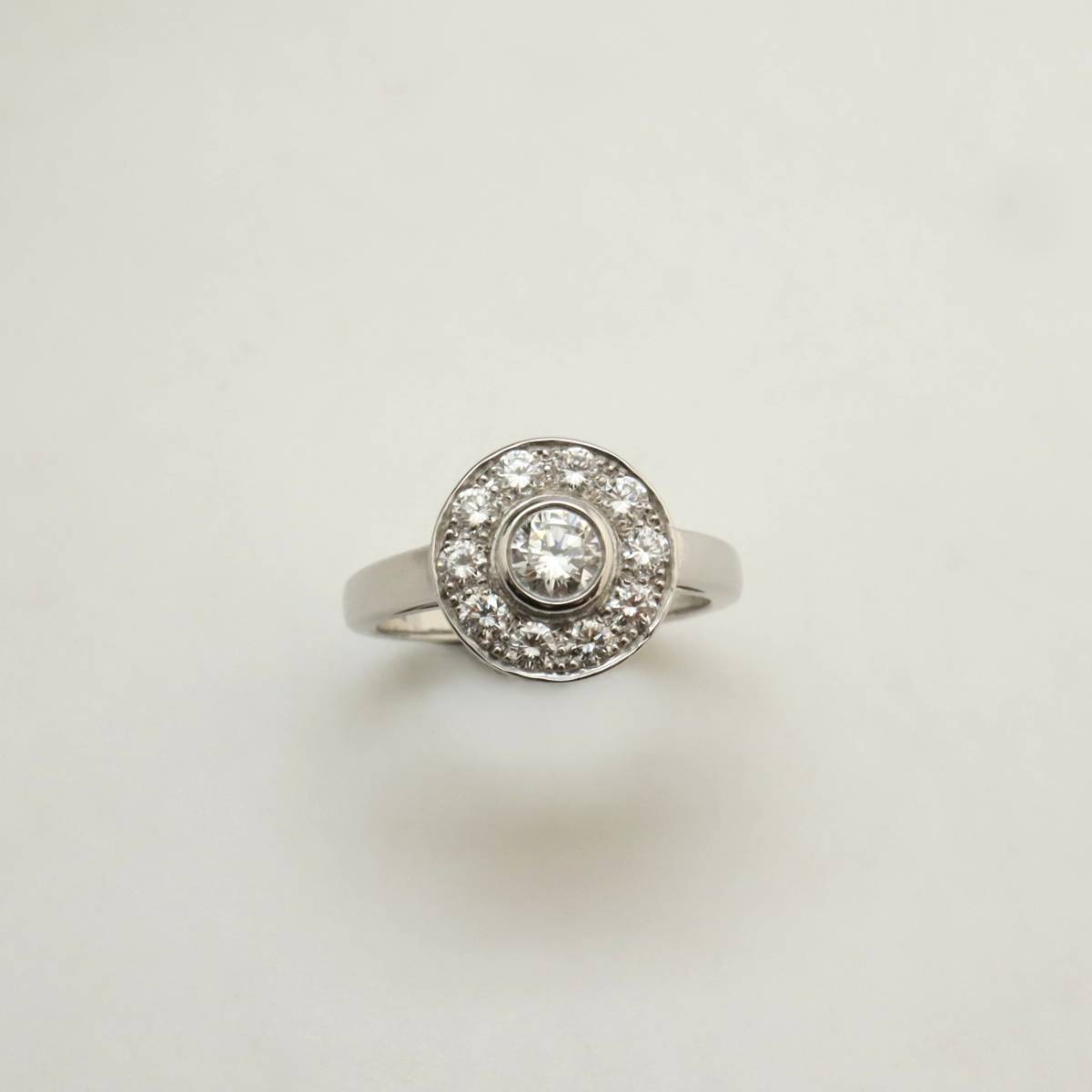 Bague entourage diamants sur or blanc
