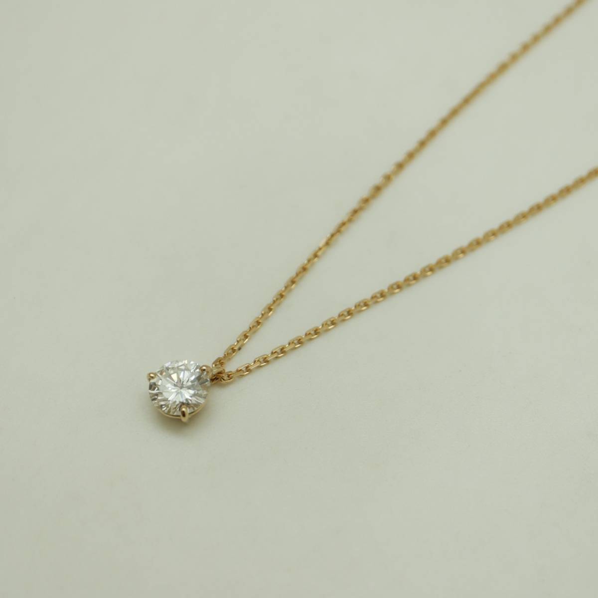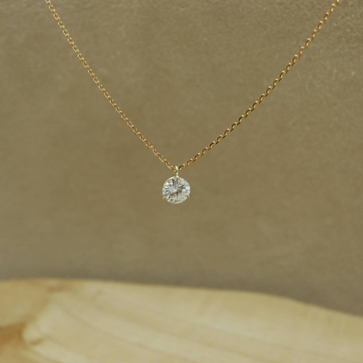 La particularité de ce bijou réside dans son ingénieux d’anneau invisible. Grâce à cette conception, le diamant semble littéralement flotter au creux du cou, comme s’il était posé sur la peau. L'effet est presque magique : le métal disparaît, ne reste que la lumière, captée et reflétée par les facettes du diamant.