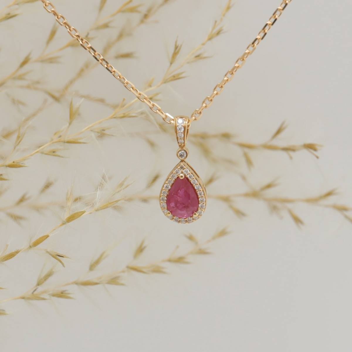 Pendentif goutte or jaune rubis taille poire entouré de diamants bijou sur mesure